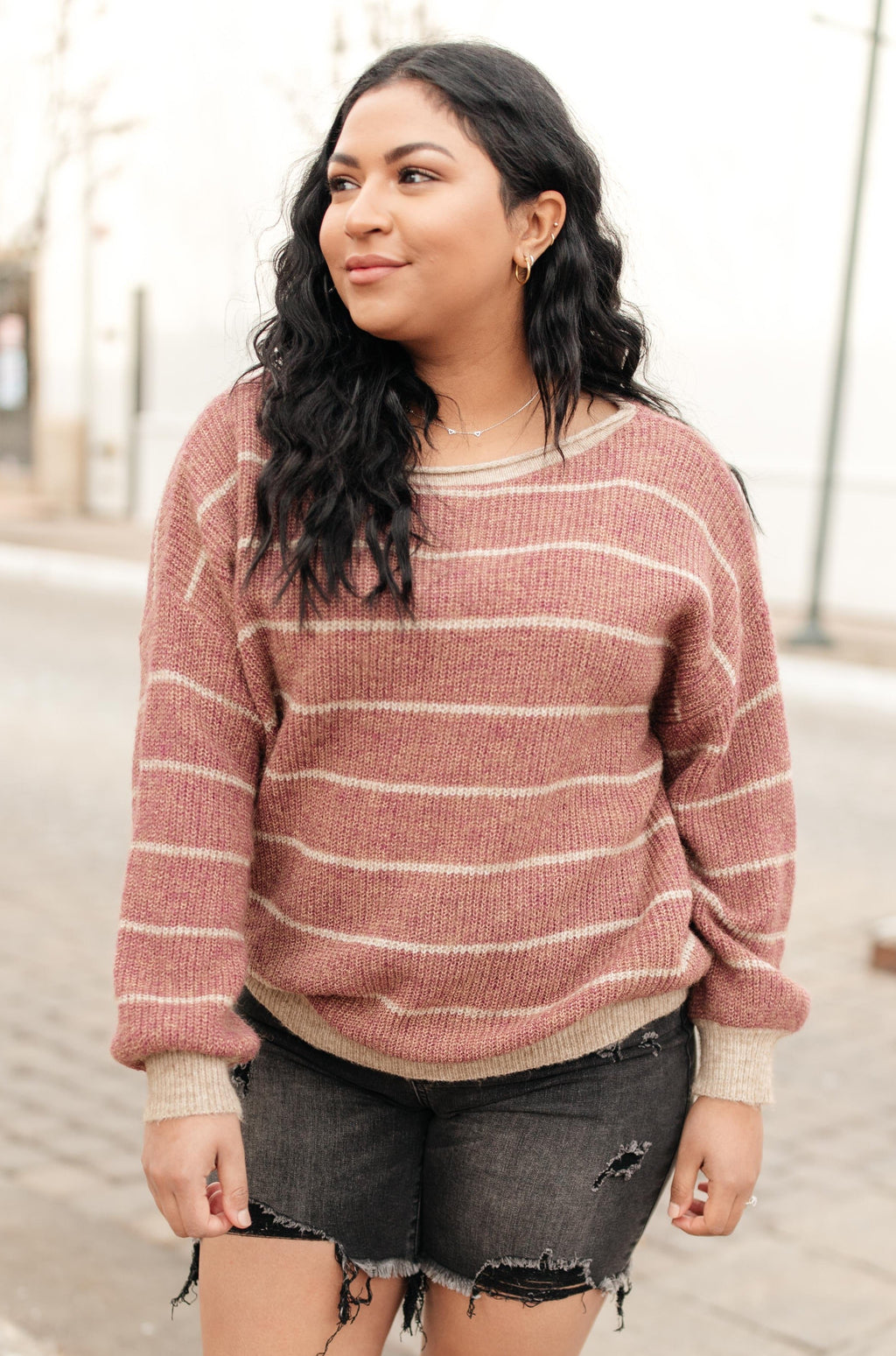 Ribbed and Striped Sweater in Mauve