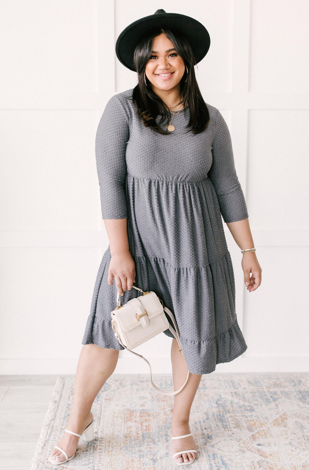 Sara Swiss Dot Dress in Gray