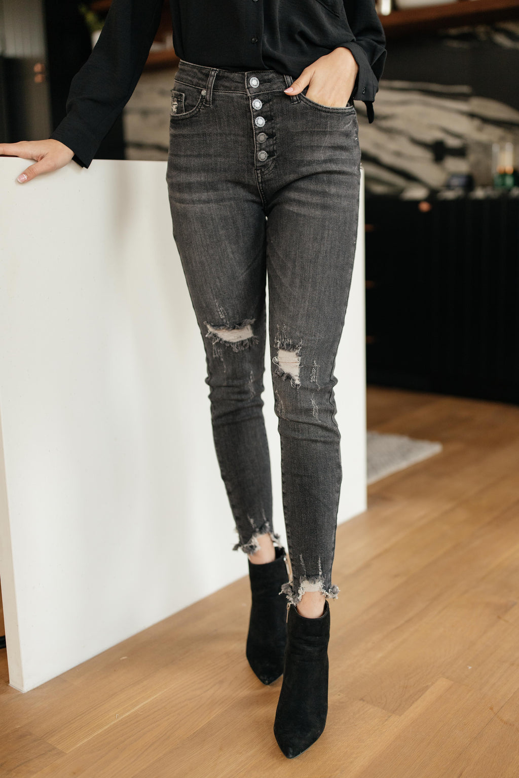 Gray Days Button Rise Jeans