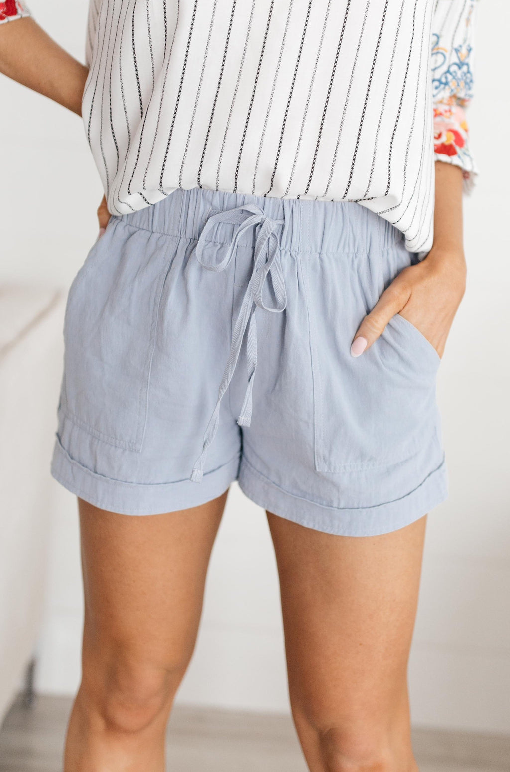 Lightweight and Linen Shorts in Baby Blue